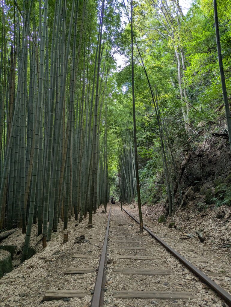 竹林に囲まれた線路は、本当に非現実的です。